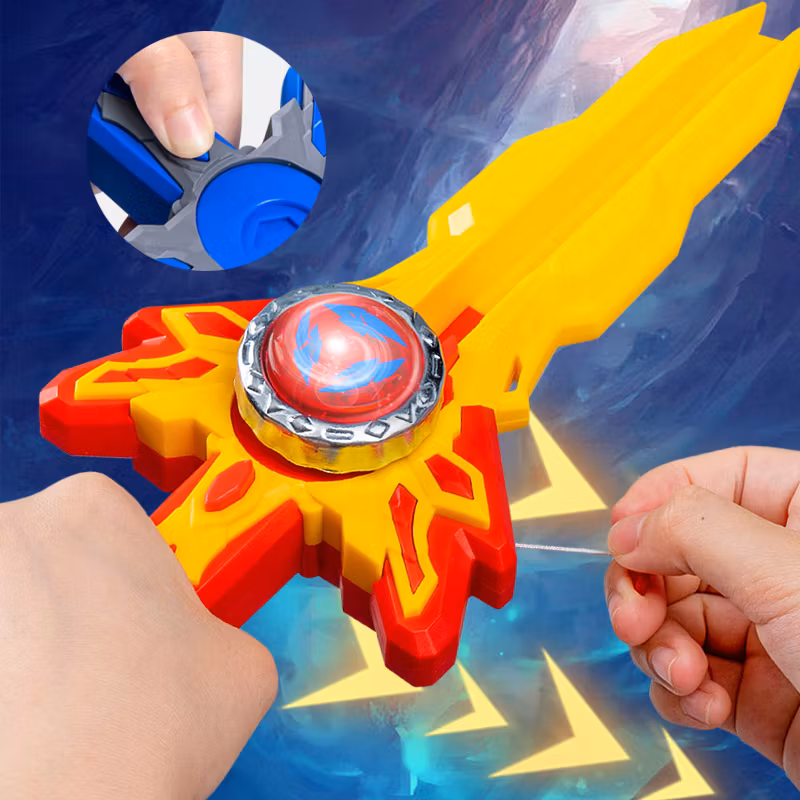 Explosionseffekter, LED-ljus, stötdämpning och svärdslansering. Ett hållbart Metal Burst-gyro för barn 6+. Perfekt present för stridslekar och timmar av underhå