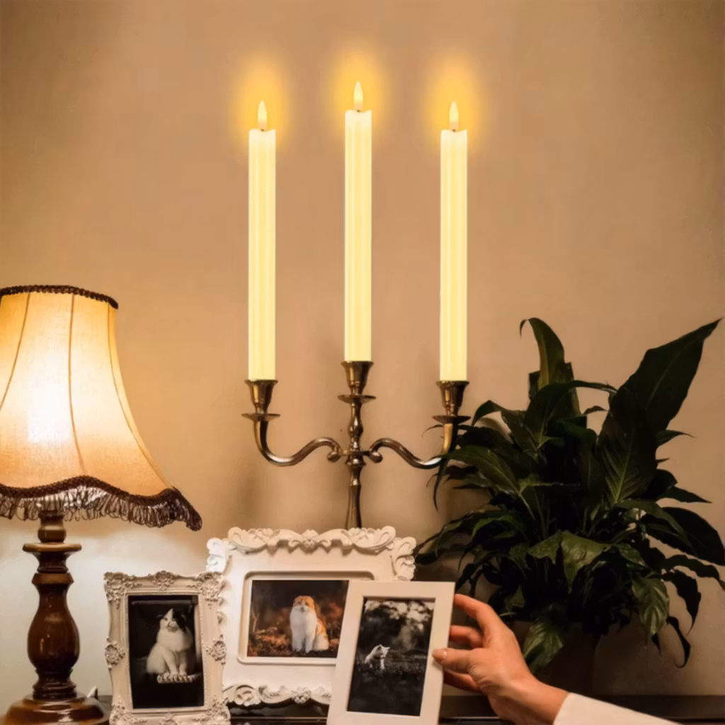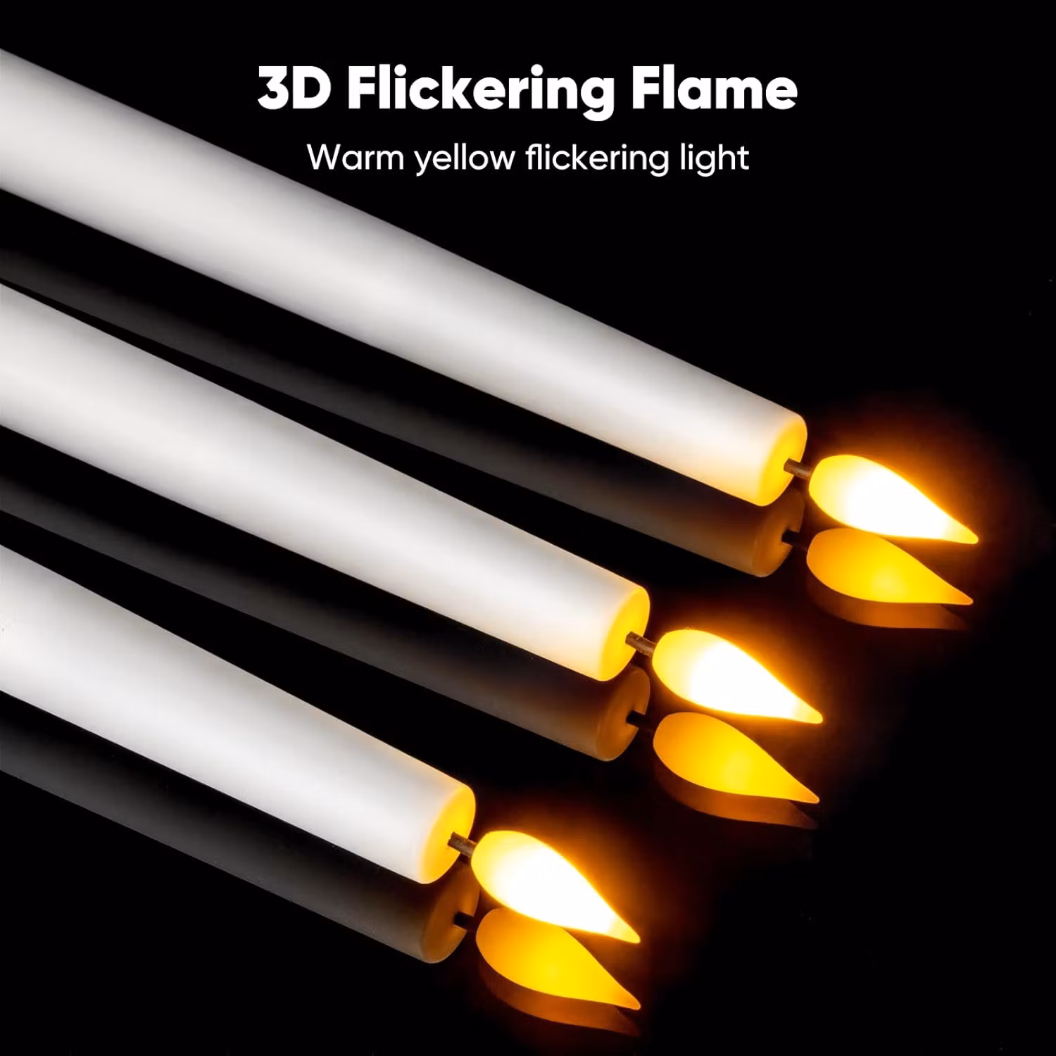 Skapa en varm och inbjudande atmosfär utan oro för brandrisk. Dessa långa elektriska taperljus är tillverkade av hållbar plast som inte smälter eller spricker, och den realistiska 3D-LED-lågan ger ett vackert fladdrande sken som imiterar äkta levande ljus. Med sin klassiska vita design blir de en tidlös inredningsdetalj som förhöjer allt från festdukningar till avslappnade hemmakvällar.